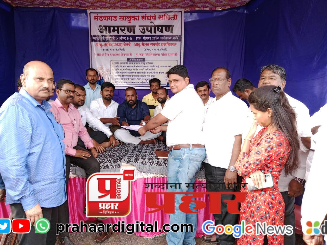 तालुक्यातील आंबडवे लोणंद या एकमेव राष्ट्रीय महामार्गाचे निर्मीतीमुळे निर्माण झालेल्या विविध समस्या सोडवून गणेशोत्सवाचे आधी हा रस्ता खड्डेमुक्त व्हावा या मागणीसाठी संघर्ष समितीच्यावतीने तहसिलदार मंडणगड यांच्याकडे निवेदन सादर करुन आंदोलनाचा इशारा देण्यात आला होता या समस्यांवर यंत्रणेने तहसिल कार्यालयाने उपोषण सुरु होण्याआधी सर्व संबंधीतांची सभा आयोजीत करुन तोडगा न निघाल्याने समितीचे अध्यक्ष अरविंद येलवे आपल्या कार्यकर्त्यांसह उपोषणास बसलेले आहेत, तुळशी घाटात संरक्षण भिंत बांधणे. पावसात खचलेला रस्ता सुधारून देणे. रस्त्यावरील खड्डे बुजवून देणे. रस्त्याला पडलेल्या भेगा सुस्थितीत करून देणे. पावसात रस्त्यावर साचलेला चिखल दूर करून देणे. गटार लाईन सुस्थितीत करून देणे. रस्त्यावरील साईड पट्टी चांगल्या दर्जाची करून देणे. रस्त्यावर डायवर्शन फलक लावणे. किल्याच्या बाजूस संरक्षक भिंती बांधणे, या विषयांकरिता समितीचे अध्यक्ष अरविंद येलवे व कार्यकर्ते यांनी उपोषण सुरु केले.