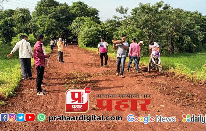 शेवरीफाटा ते हॉस्पिटल स्टॉप रस्त्याचे खड्डे भरले
