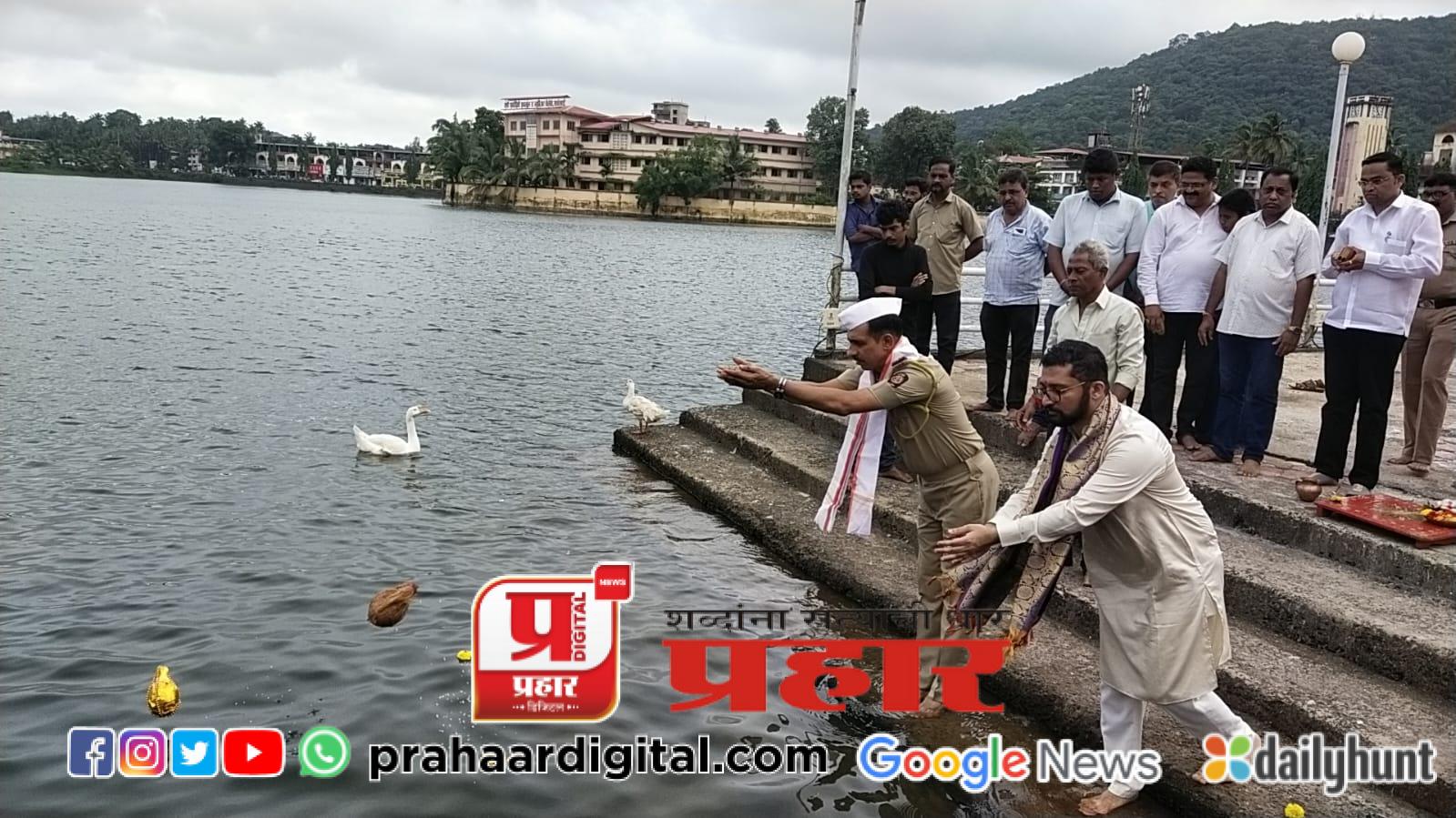 यानंतर उपस्थित शहरवासियांनीही तलावाला नारळ अर्पण केले. यावेळी युवराज लखमराजे भोंसले, पोलिस निरीक्षक अमोल चव्हाण, समीर वंजारी, दिलीप भालेकर, सचिन सावंत, एल एम सावंत, कृष्णा उर्फ जीजी राऊळ, पोलिस दर्शन सावंत, महेश जाधव, सचिन कुलकर्णी, शरद सोमण, रत्नाकर माळी आदी उपस्थित होते.