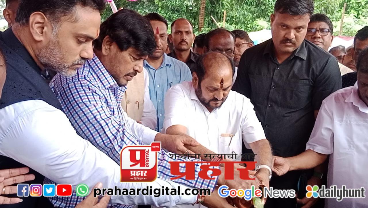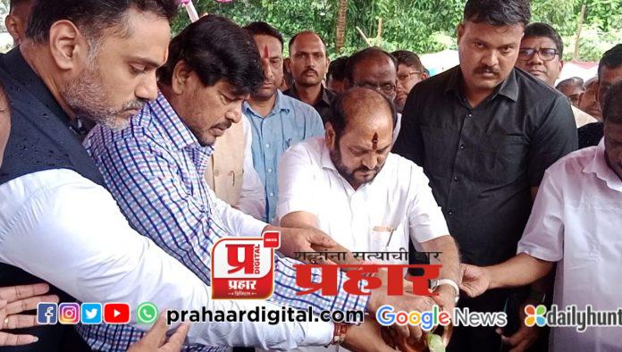 खेड दौऱ्यावर आलेल्या केंद्रीय सामाजिक न्यायमंत्री आठवले व शिवसेना नेते रामदास कदम यांच्या उपस्थितीत सभागृह बांधकामाचे भूमिपूजनही पार