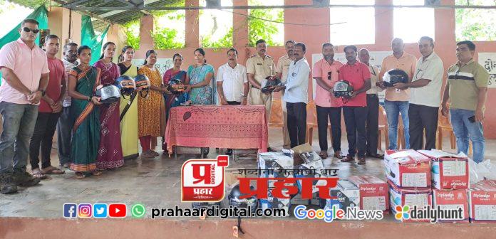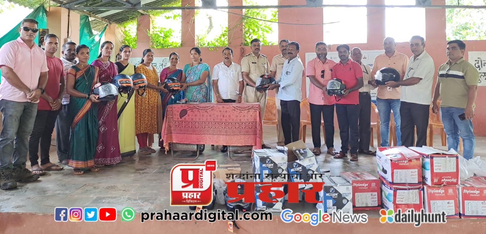 वारगाव मधील सर्व दुचाकी चालकांना स्वखर्चाने केले हेल्मेटचे वाटप