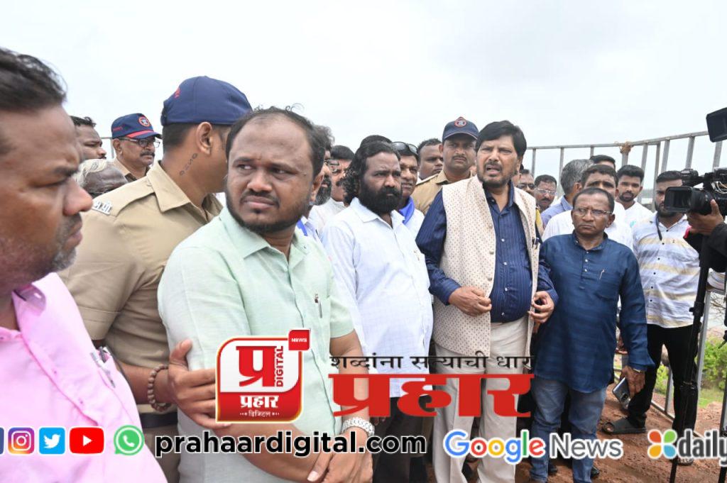 ते म्हणाले, सर्वांनी एकत्रित होवून घटनेची सखोल चौकशी करण्यासाठी प्रयत्न करायला हवेत. यातील दोषींचा शोध घेऊन त्यांना कडक शासन होण्यासाठी शासन यंत्रणांना सहकार्य करायला हवे. विरोधकांकडून फक्त टिका आणि राजकारण हिच भुमीका घेण्यात येत आहे. मुख्यमंत्री, उपमुख्यमंत्री यांच्याशी चर्चा करून अशाप्रकारची संयुक्त समिती गठीत करण्याच्या सूचना करू असेही श्री. आठवले यांनी सांगितले.