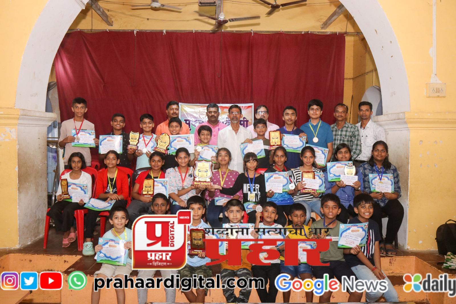 प्रथम यश सावंत, द्वितीय दक्ष वालावलकर, तृतीय अद्विक पाटील, चौथा स्मित सावंत, पाचवा विघ्नेश अंबापूरकर