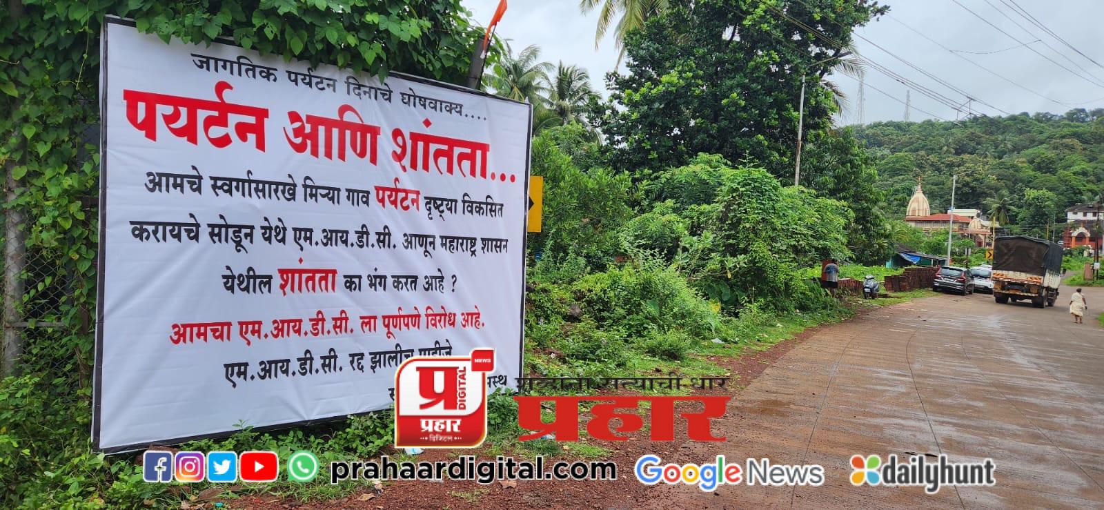 रत्नागिरी : मिर्या येथे होऊ घातलेल्या एमआयडीसीला स्थानिकांसह आता गणेशोत्सवासाठी आलेल्या चाकरमान्यांनीही विरोध दर्शवला असून, लवकरच येणार्या जागतिक पर्यटन दिनानिमित्त मिर्या-मुरुगवाडा नाक्यावर पर्यटन आणि शांतता असा बोर्ड लावत शासन शांतता भंग का करीत आहे असा प्रश्न ग्रामस्थांकडून उपस्थित करण्यात आला आहे.