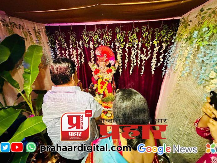 खा. राणे हे रविवारी चिपळूण दौऱ्यावर आहेत. त्यांच्या समवेत सौ. नीलमताई राणे याही आहेत. सिंधुदुर्ग मधून रत्नागिरीत आल्यानंतर खा. राणे यांचे राजापूर, लांजा तसेच हातखंबा येथे कार्यकर्ते, पदाधिकारी यांनी जोरदार स्वागत केले. यावेळी रत्नागिरी तालुक्यातील निवळी येथील भाजपाचे कार्यकर्ते वैभव पवार यांनी दादांना त्यांच्या निवासस्थानी सदिच्छा भेट इच्छा व्यक्त केली. खा. राणे यानीही ती तात्काळ पूर्ण करत पवार यांच्या निवासस्थानी भेट दिली. तेथे विराजमान झालेला गणपती बाप्पाचे तसेच सत्यनारायण महापूजेचे सपत्नीक दर्शन घेतले.
