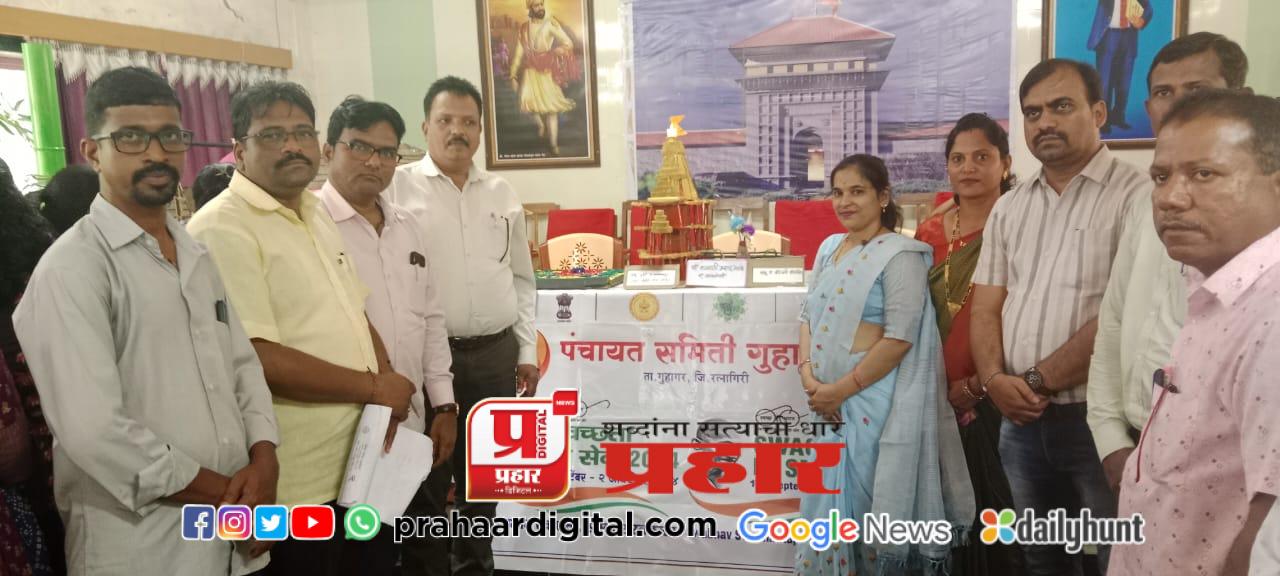 मोडकाआगर l वार्ताहर :जिल्हा परिषद रत्नागिरीच्या जिल्हा व पाणी स्वच्छता मिशन कक्ष अंतर्गत गुहागर पंचायत समितीच्या वतीने तालुक्यातील महिला बचत गट जिल्हा परिषद शाळा व ग्रामपंचायत साठी टाकाऊ वस्तूंची कलाकृती स्पर्धा पंचायत समिती सभागृह येथे आयोजित करण्यात आली होती. या स्पर्धेचा उद्घाटन गुहागर पंचायत समितीचे गटविकास अधिकारी प्रमोद केळसकर यांच्या शुभहस्ते फीत कापून करण्यात आले. यावेळी गटशिक्षणाधिकारी रामचंद्र गळवे, ग्राम विस्तार अधिकारी शरद भांड, गुहागर तालुका ग्रामसेवक संघटना अध्यक्ष बाबुराव सुर्यवंशी, पत्रकार गणेश किर्वे, आबलोली सरपंच वैष्णवी नेटके, उपसरपंच अक्षय पागडे, परदेशी परीक्षक सुरेश कदम, (जामसुत हायस्कूल),गणेश कुलकर्णी (पाचेरीआगर हायस्कूल), संतोष मोहिते (गुहागर हायस्कूल) आदी मान्यवर उपस्थित होते. टाकाऊ वस्तूंची कलाकृती गुणांकनांमध्ये सर्जनशीलता आणि मौलिकता, टाकाऊ पदार्थांचा वापर, कारागिरी आणि अंमलबजावणी, पर्यावरण संदेश, सौंदर विषयक आवाहन, साहित्य वापरातील नाविन्य, वैचारिक खोली, प्रभाव आणि संप्रेषण, सादरीकरण अशा पद्धतीने गुणांकन दिले जाणार आहे. या स्पर्धेमध्ये कोतळूक शाळा नं. १, ग्रामपंचायत उमराठ येथील संदेश पांडुरंग गावंणंग यांनी टाकाऊ पुठ्ठ्यातून श्री नवलाई मंदिर व बगाडा तयार केला होता, ग्रामपंचायत आबलोली यांनी बांबू पुठ्ठा व स्पंजपासून टाकाऊ वस्तु पासून कलाकृती सादर केले होते, पुठ्ठ्यांपासून बनवलेले राम मंदिर सर्वांचेच लक्ष वेधून घेत होते. शाळा अंजनवेल , ग्रामपंचायत खोडदे, सद्गुरू कृपा स्वयम् सहायता समूह बचत गट खोडदे गणेश वाडी, माऊली समूह बचत गट खोडदे मोहितेवाडी, किसान महिला बचत गट खोडदे बौद्धवाडी, पोमेंडी ग्रामपंचायत, ग्रामपंचायत धोपावे तेटले, पाटपन्हाळे हायस्कूल, जिल्हा परिषद शाळा गुहागर नंबर १, केंद्र साखरी बुद्रुक शाळा, चिखली मांडवकरवाडी शाळा नं.१