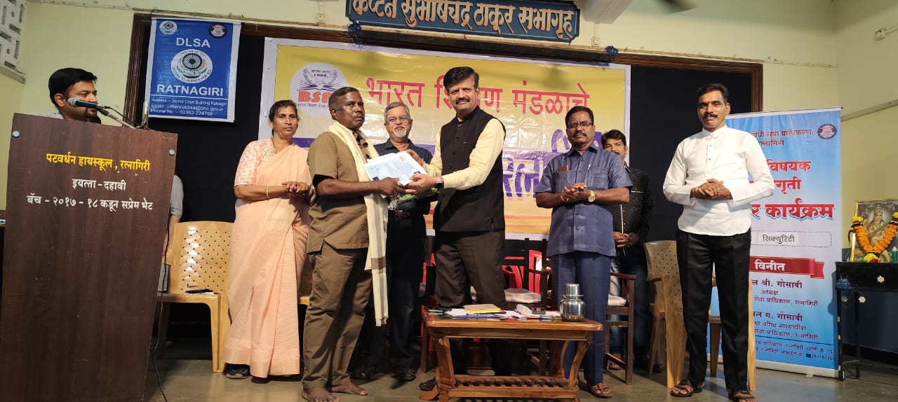 या कार्यक्रमासाठी प्रमुख अतिथी म्हणून रत्नागिरी जिल्ह्याच्या विधी सेवा प्राधिकरणाचे वरिष्ठ न्यायाधिश सन्माननीय निखील गोसावी उपस्थित होते तर कार्यक्रमाच्या अध्यक्षस्थानी भारत शिक्षण मंडळाचे उपकार्याध्यक्ष श्रीराम भावे उपस्थित होते