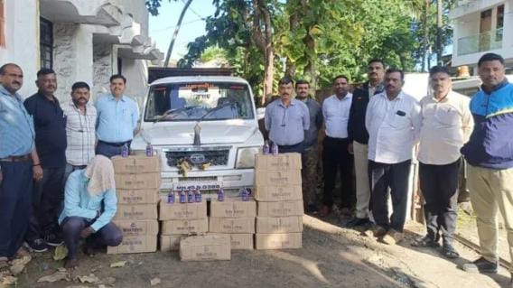 पांढऱ्या रंगाच्या टाटा सुमो वाहन क्र.एम.एच.४५.एन ०३८८ वाहनामध्ये गोवा बनावट विदेशी मद्याचे गोल्डन एस ब्लू फाईन विस्कीचे १८० मिलीचे १९ बॉक्स मिळाले.आरोपी राजाराम आनंदा तांबेकर याच्यावर विनापरवाना साठा केल्याबद्दल गुन्हा नोंद करण्यात आला आहे.