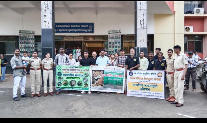 दापोली | प्रतिनिधी:- वनविभाग दापोली आणि वाइल्ड अॅनिमल रेस्क्यूअर यांच्या संयुक्त विद्यमाने दिनांक ७ऑक्टोबर रोजी कृषी अभियांत्रिकी आणि तंत्रज्ञान महाविद्यालय, दापोली येथे वन्यजीव संरक्षण व संवर्धन या विषयावर प्रबोधनपर कार्यशाळा संपन्न झाली.या कार्यशाळेसाठी शंभर विद्यार्थी उपस्थित होते.सर्प व इतर वन्यजीव दिसल्यावर नक्की काय करावे व काय करू नये,यासोबत कोणती काळजी घ्यावी याची सहज सोप्या भाषेत विद्यार्थ्यांशी खेळीमेळीत संवाद साधत विद्यार्थ्यांना माहिती देण्यात आली.कार्यशाळेसाठी वनविभाग दापोली वनरक्षक शुभांगी भिलारे,शुभांगी गुरव,सुरज जगताप,विश्वंभर झाडे तसेच निवेदिता प्रतिष्ठानच्या महेश्वरी विचारे यांनी निसर्ग संवर्धन विषयी माहिती दिली,वाईल्ड ऍनिमल रिस्क्युअर संस्थेचे मार्गदर्शक सुरेश खानविलकर अध्यक्ष-मिलिंद गोरीवले,उपाध्यक्ष मनीत बाईत, सचिव तुषार महाडिक,सदस्य प्रितम साठविलकर,किरण करमरकर,अनिकेत जाधव,शामल साठविलकर यांनी मार्गदर्शन केले.कार्यशाळेच्या यशस्वीतेकरिता सहयोगी अधिष्ठाता डॉ.प्रशात शहारे,