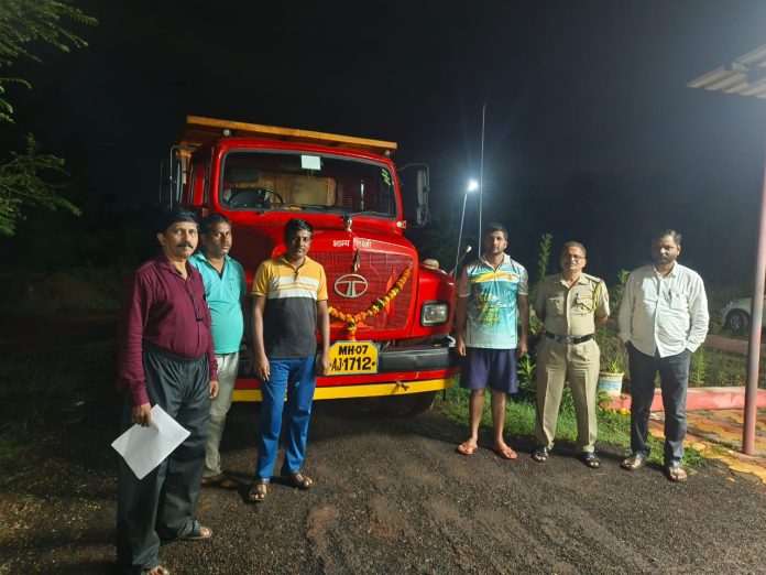 आचरा–अर्जुन बापर्डेकर :मंगळवारी १५ ऑक्टोबर रोजी रात्री सव्वा नऊच्या सुमारास रामगड गावचे हद्दीत वाळू वाहतूक करणारा डंपर एम एच ०७ ए जे १७१२ हा अंदाजे तीन ब्रासहवाळू वाहतूक करत असताना गौण खनिज वाहतूक विरोधी पथकाच्या नजरेस आला सदर डंपरचालकाकडे पथकाकडून परवान्याची मागणी केली असता आढळून आला नाही.त्यामुळे सदर गाडी ताब्यात घेऊन आचरा पोलीसांच्या ताब्यात देण्यात आला आहे. या वेळी आचरा तलाठी संतोष जाधव ,असरोंडी तलाठी काटे, त्रिंबक तलाठी रविराज शेजवल,पोलीस हवालदार तुकाराम पडवळ, पोलीस पाटील सुनील खरात आदी सहभागी झाले होते.