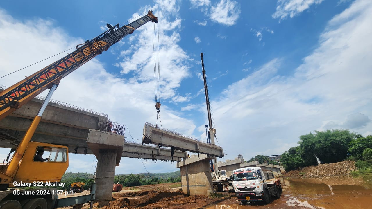 गेल्या काही वर्षांपासून या पुलाचे काम सुरु आहे. पावसाळ्यापूर्वी १४ पिलरचे काम पूर्ण करण्यात आले होते. त्यानंतर आता पावसाचा जोर कमी होताच पुन्हा कामाला सुरुवात केली आहे. आता पुलावर गर्डर चढवण्याचे अंतिम काम सुरु आहे. हे कामही लवकरच पूर्ण करण्यात येणार आहे. गर्डरचे काम पूर्ण होताच पुलावरील उर्वरित स्लॅबचे व रेलिंगचे काम हाती घेतले जाणार आहे. या पुलावर एकूण ६० गर्डर चढवले जाणार आहेत. आतापर्यंत ४६ गर्डर चढवण्यात आले आहेत. उर्वरित कामही तातडीने मार्गी लावले जाणार आहे.