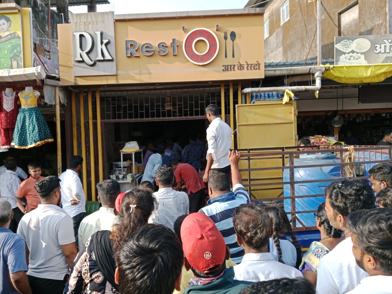 आर. के. रेस्टो. हॉटेल हे शहरातील मध्यवर्ती ठिकाणी असल्याने नेहमीच गजबजलेले असते. बुधवारी सायंकाळी हॉटेल मधील कर्मचारी किचनमध्ये काम करत असताना अचानक कढईतील तेलाने पेट घेतला, आगीच्या भडक्यामुळे सिलेंडरच्या पाईप व रेग्युलेटरने पेट घेतला. रेग्युलेटर उडाल्याने स्पोट झाल्याचा आवाज सर्वत्र झाल्याने आसपासच्या दुकानदारांनी तत्काळ आग विझवण्यासाठी मदतकार्य सुरु केले. या घटनेचा उशिरापर्यंत पंचनामा झाला नव्हता. मात्र रहदारीच्या व गजबजलेल्या ठिकाणी झालेल्या दुर्घटनेत थोडक्यात नियंत्रण मिळवण्यात यश आल्याने सर्वानीच सुटकेचा नीश्वास सोडला. या दुर्घटनेत करण्यास रुपेश साळुंखे, राहुल खांबे, साईराज सावंत, कौस्तुभ भिंगार्डे व आसपासच्या दुकानदार व्यापाऱ्यांनी मदकार्य करण्यास पुढाकार घेतला. यावेळी एच. पी. गँस एजन्सीचे कर्मचारी, महावितरण चे कर्मचारी तात्काळ घटनास्थळी भेट देवून मदत्कर्याची कार्यवाही सुरू केली.