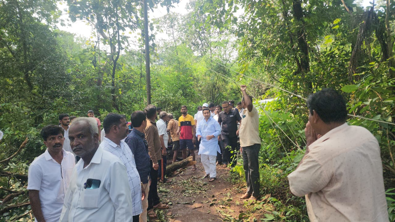 कणकवली :कणकवली तालुक्यातील बेळणे खुर्द येथे शुक्रवारी दुपारी ३.३० वाजण्याच्या सुमारास जोरदार चक्रीवादळ झाले. विजेच्या कडकडासह जोरदार पाऊस झाल्याने मोठी पडझड झाली. झालेल्या चक्रीवादळात घरांवर झाडे पडून नुकसान झाले व वीज वितरणच्या पोलांवर देखील झाडे पडुन विद्युत पुरवठा खंडीत झाला होता. या घटनेची तात्काळ दखल घेवून कणकवलीचे आ. नितेश राणे यांनी बेळणे खुर्द गावातील नुकसान ग्रस्तांची भेट घेवून विचारपुस करत संवाद साधला. आ.नितेश राणे यांनी महसुल विभागाच्या अधिका-यांसह , वीज वितरणच्या अधिका-यांना तात्काळ पंचनामे करा व वीज तातडीने सुरु करा असा सुचना दिल्या. तसेच शासनाच्या माध्यमातून सर्वतोपरी मदत करण्याचे आश्वासन आ. नितेश राणे यांनी नुकसान ग्रस्तांना दिले.